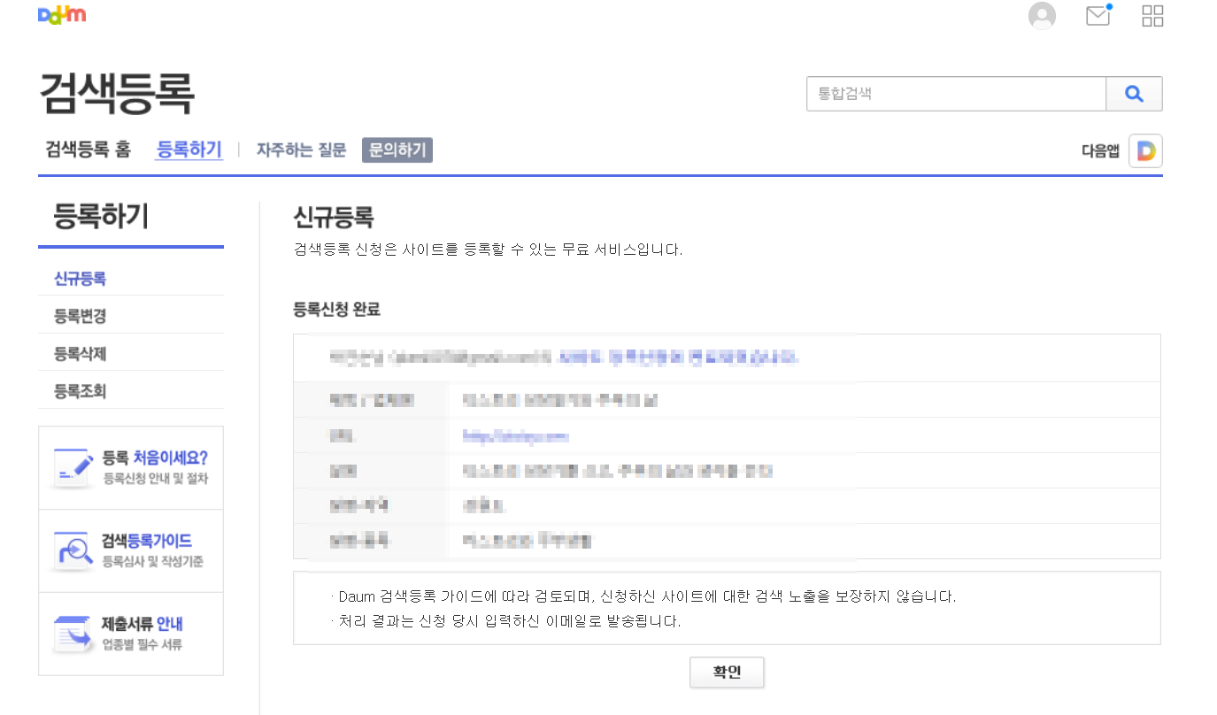 왠지 뿌듯함을 살짝 누르고 검색등록을 마저 진행하자