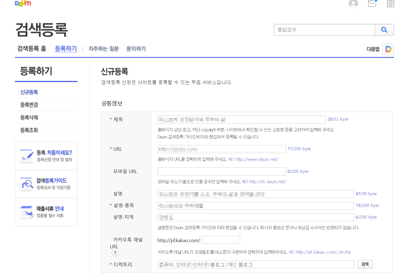 그래도 해서 나쁠 거 없는 거 같으니 검색 등록을 진행해 보았다.