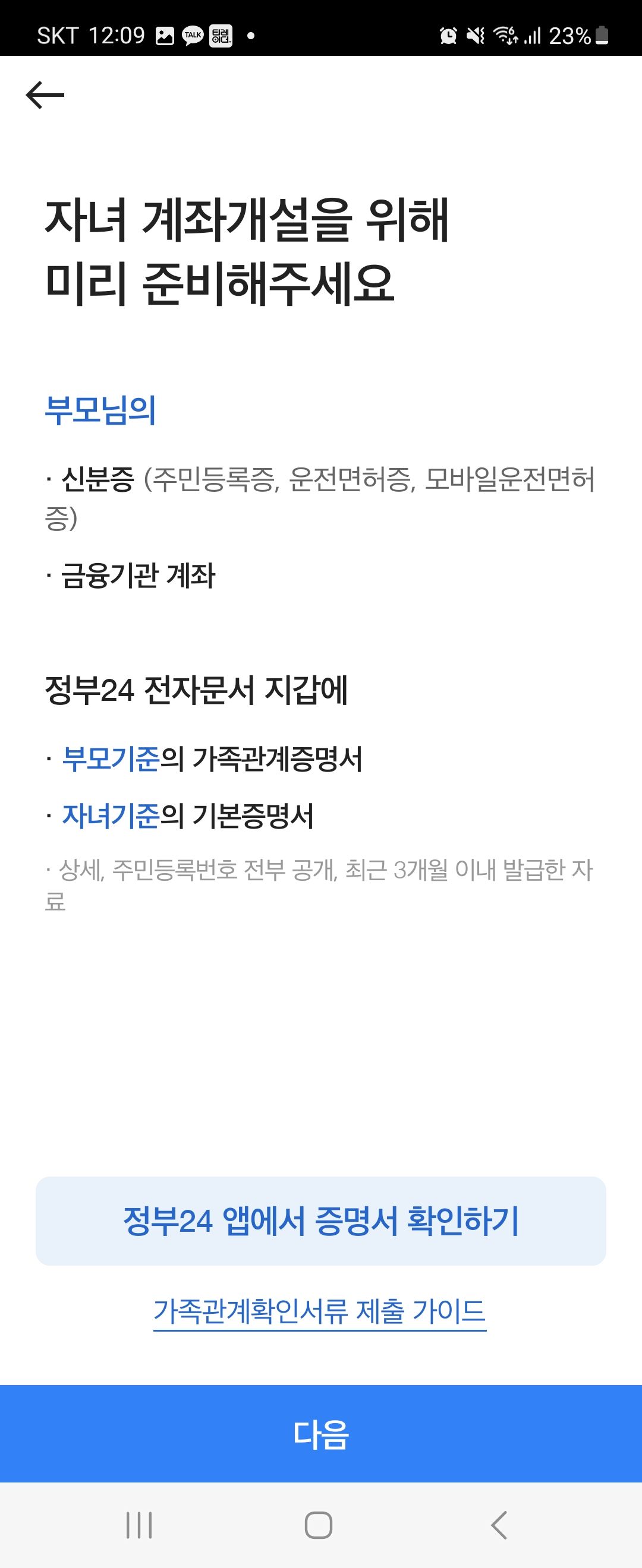 일단 자녀 비대면 계좌개설을 하려면 필요한 게 몇 가지 있어요.