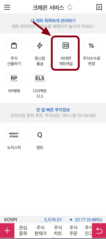 그런 다음, 비대면 계좌 개설을 눌러주세요.