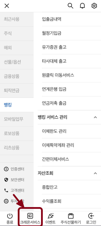 그러면 아래와 같은 화면이 나오는데 맨 아래에 크레온 서비스를 눌러주세요.