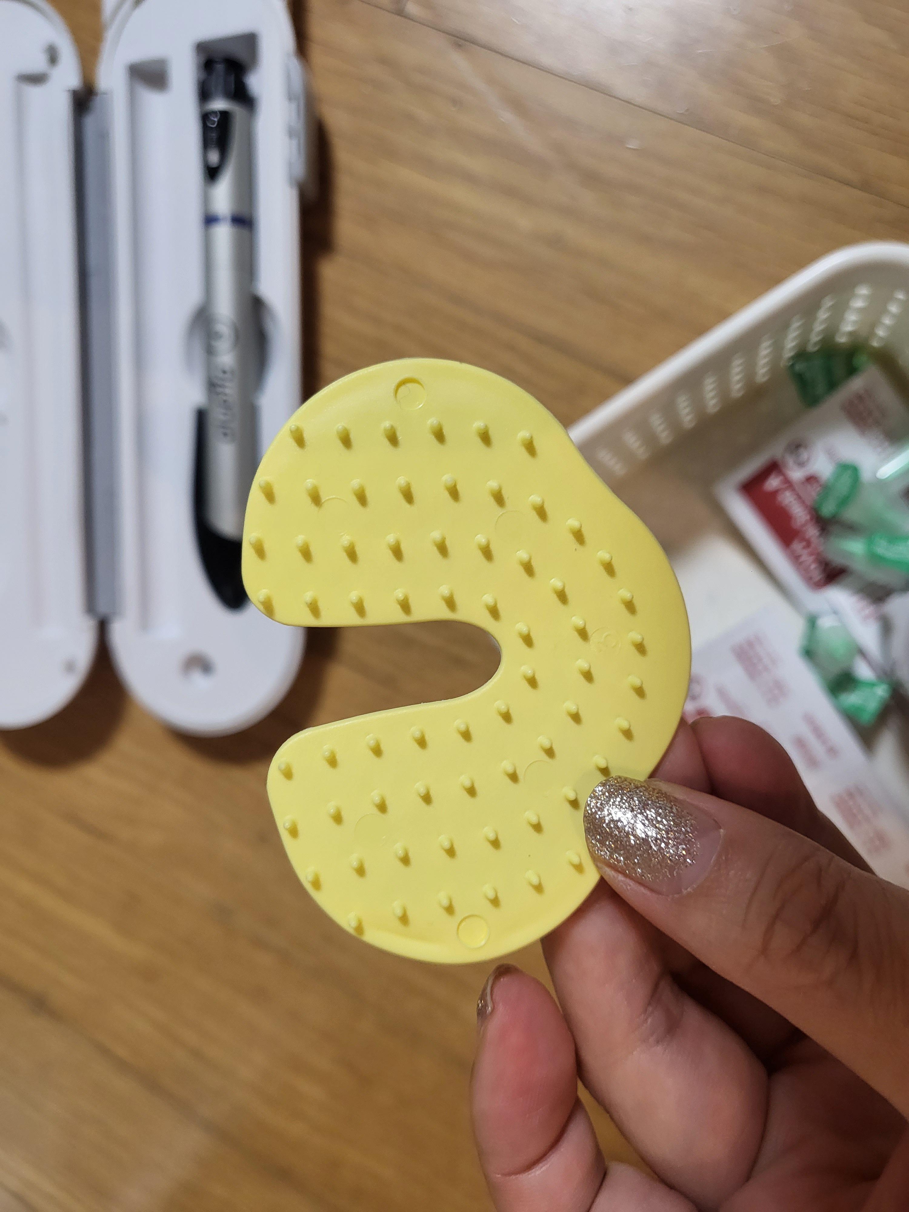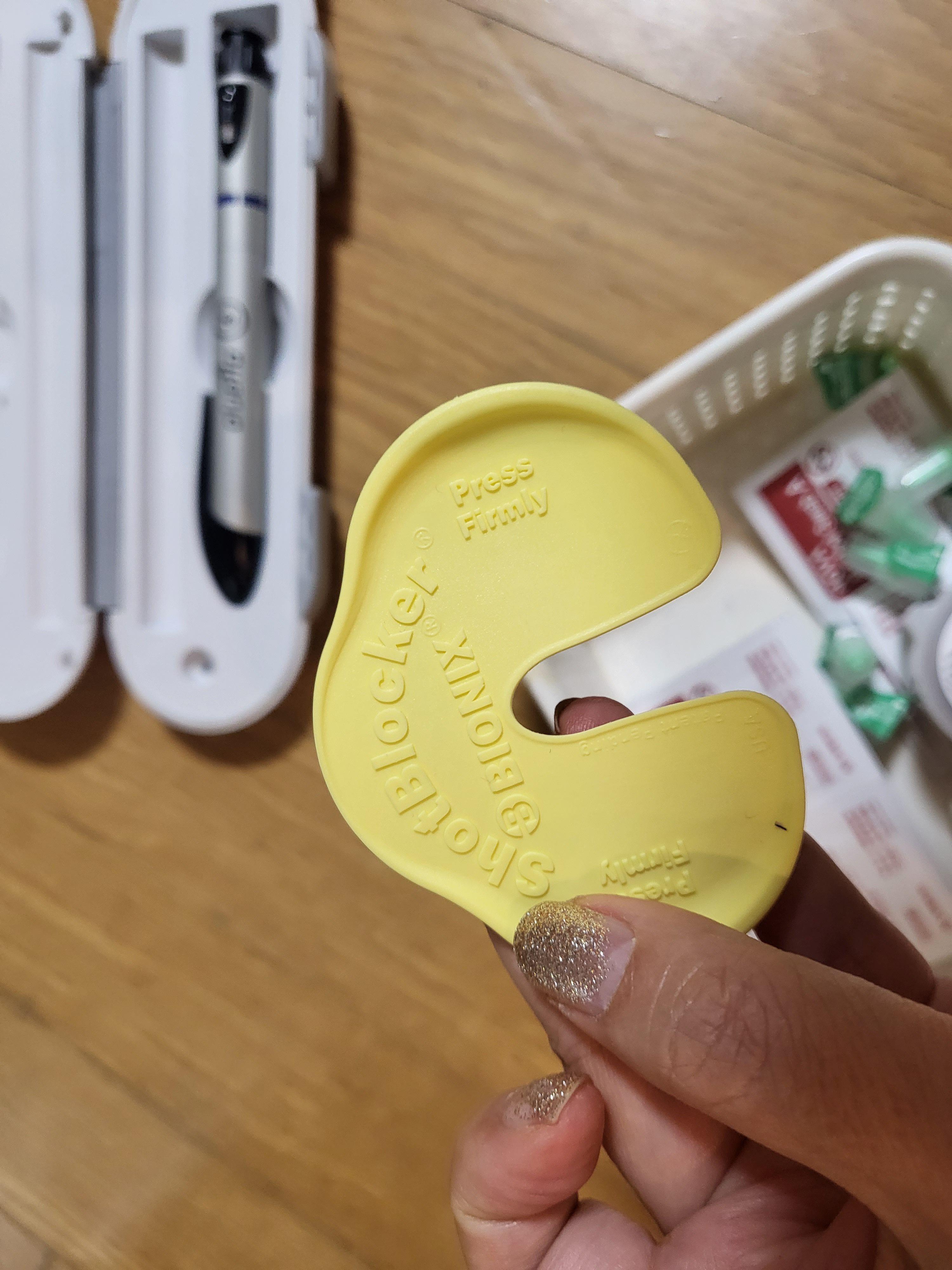 사용해 보니, 이걸 누르면 바늘이 들어갈 때 느낌이 안 난다고 했다.