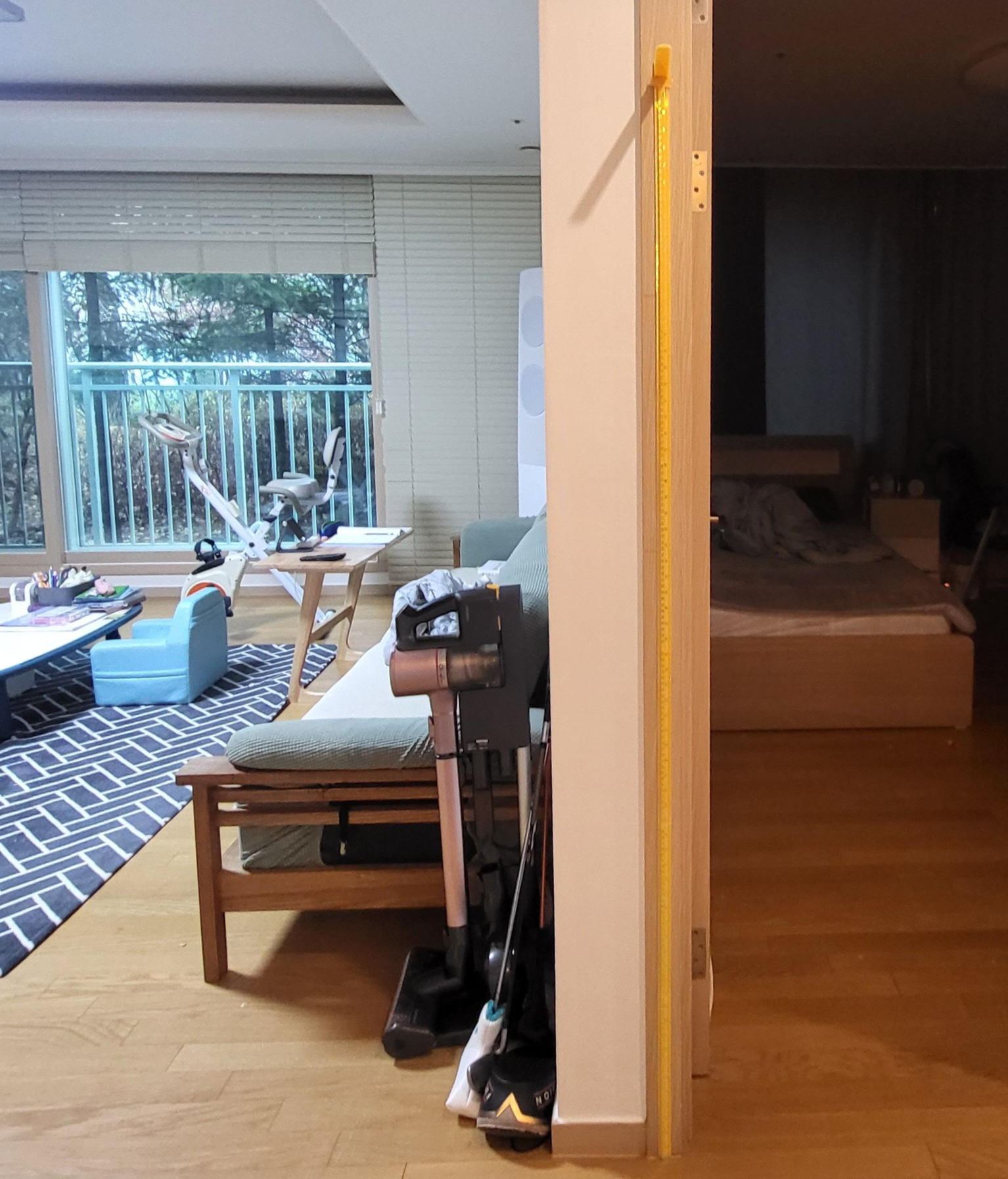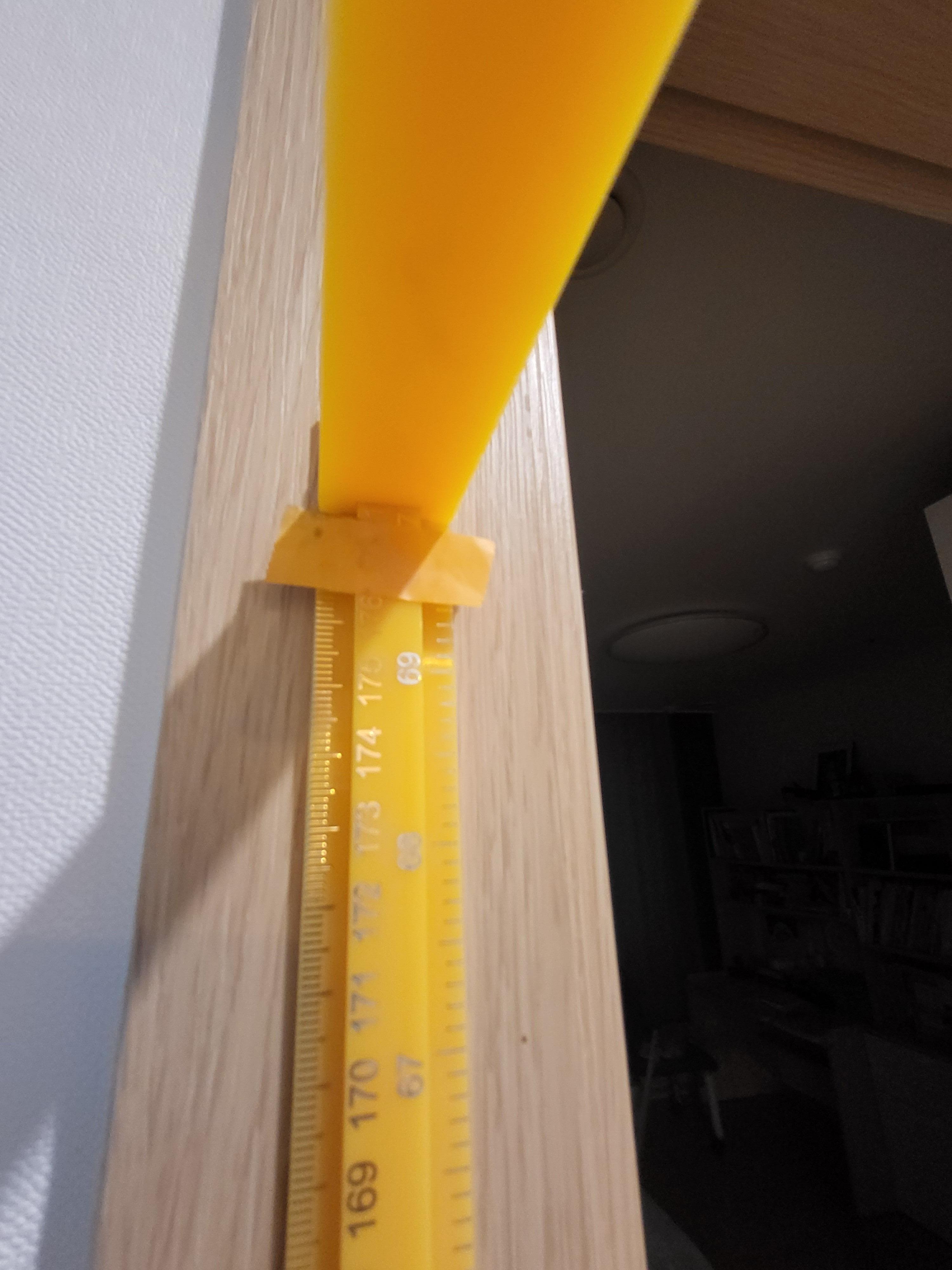 매번 두꺼운 책을 머리위에 놓고 재려니, 아이가 빠져나가는 동안 책무게로 손이 내려앉으니 정확히 키가 재어지지 않았다.