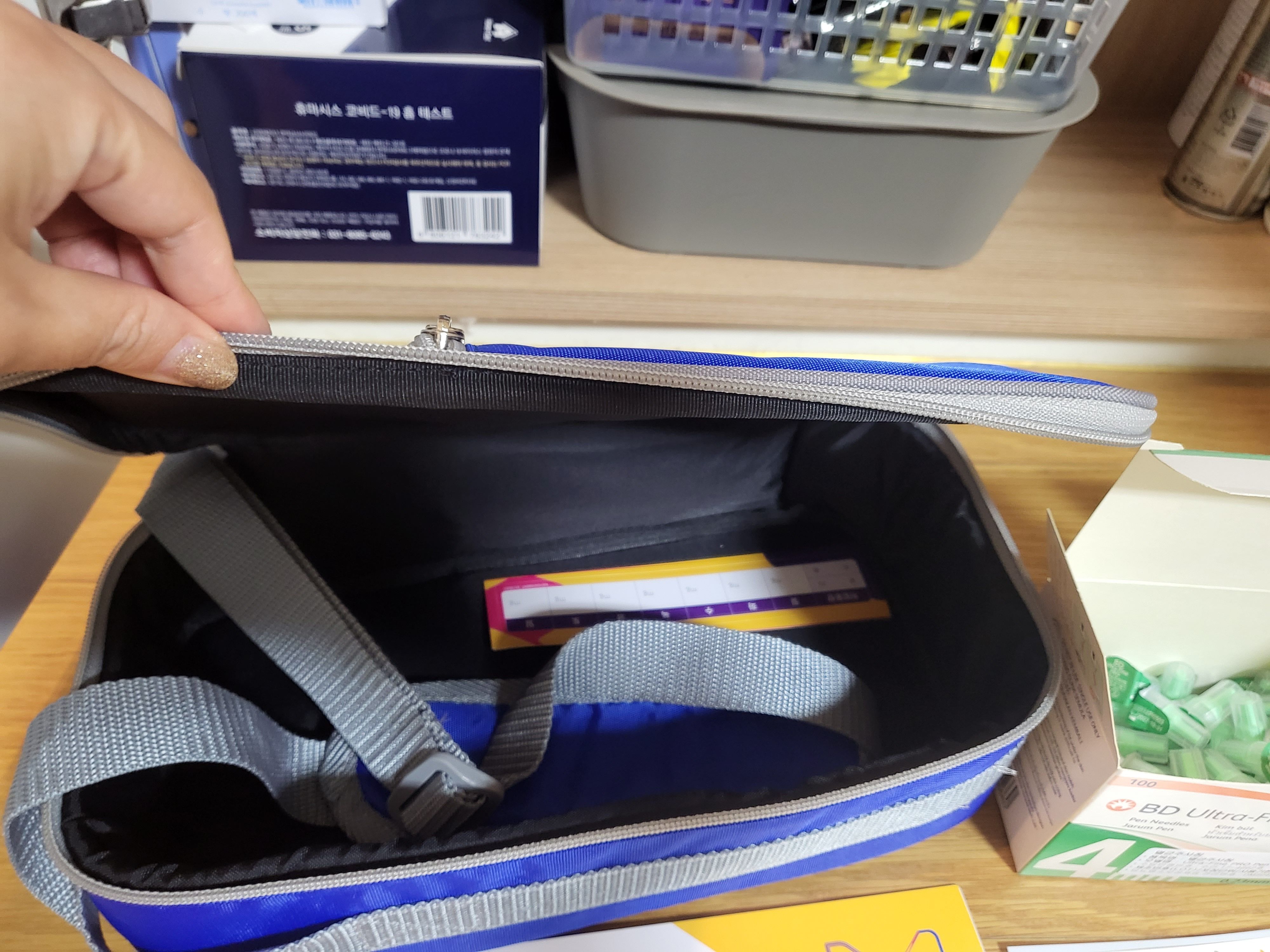 여기에 아이스팩을 함께 넣어 가지고 다녀야 한다.