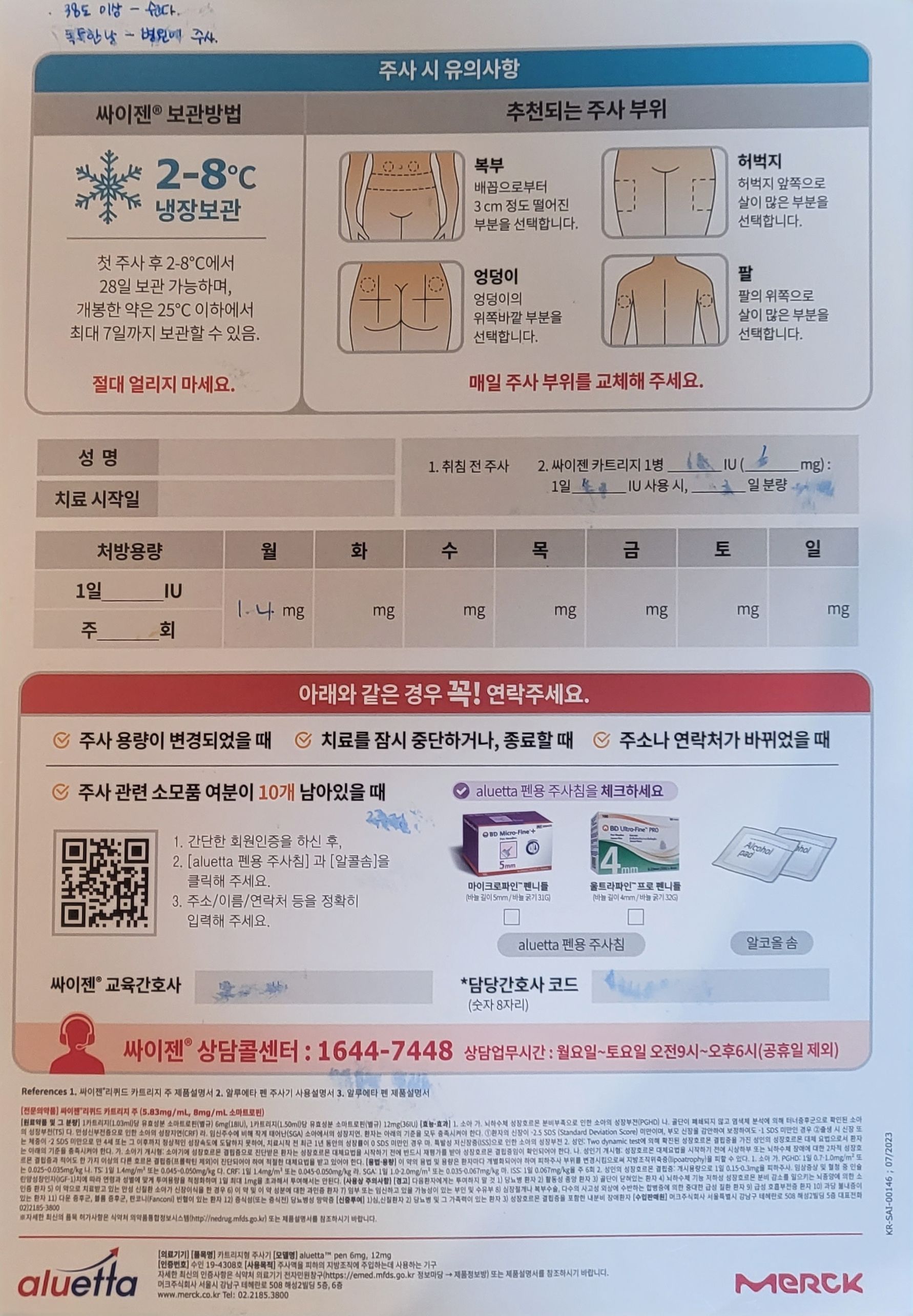 싸이젠 주사는 자기 1~2시간 전에 맞으라고 하는데
