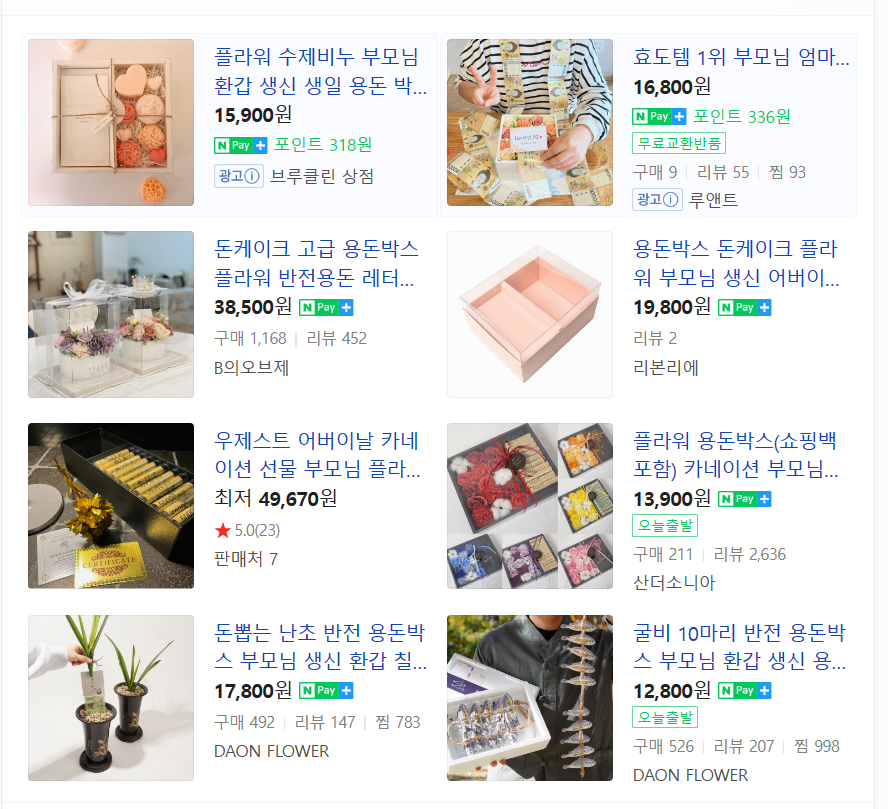 찾아보면 재밌는 용돈 박스들도 많으니 깜찍한 이벤트를 원하시는 분들은 여러 가지 제품들을 구경해 보세요.