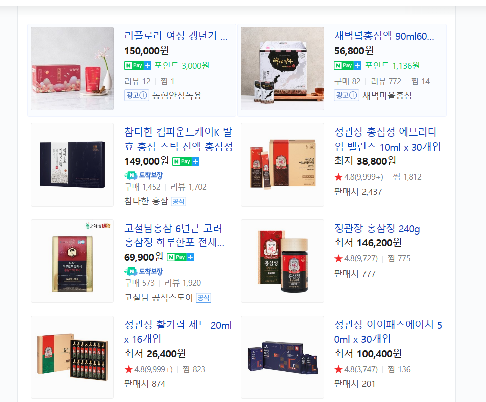 저렴한 홍삼부터 정관장까지 다양한 가격대가 있으니 너무 비싸다고만 생각하지 않아도 좋을 거 같아요.