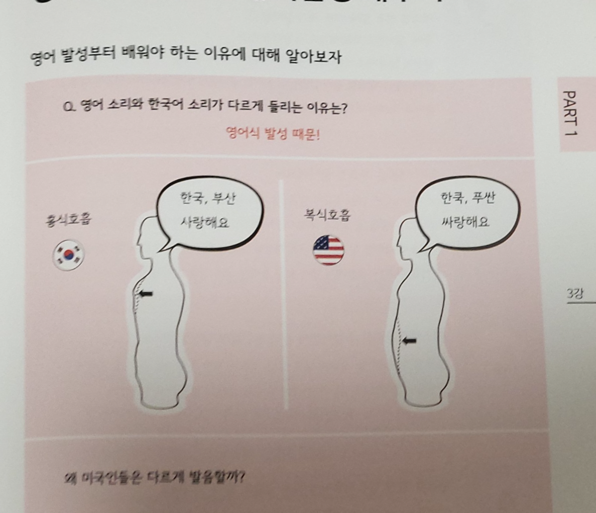물론 다른 영어 강의를 들어보진 못했으나, 아마 복식호흡과 발성을 이렇게나 강조하는 강의는 많지 않을 것 같다. 호흡이 다르니, 아무리 흉내 내도 다르게 나오던 소리가 호흡을 따라 하니 비슷하게 나오기 시작했다. 처음에만 호흡을 강조하고 끝나는 게 아니고, 커리큘럼상에도 강의 중에도 계속 반복된다. 처음엔 너무 힘들고 어색했는데 시간이 지나니 나도 모르게 소르가 영어를 할 때는 좀 더 배 아래쪽에서 나오기 시작했다.