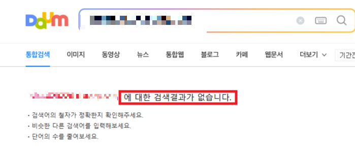 만약 저품질이라면 검색결과를 찾을 수가 없습니다라고 뜬다.