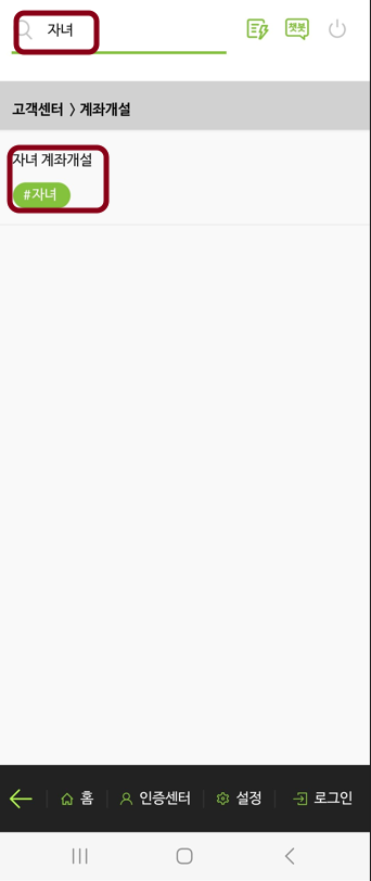 3. 검색을 통해 자녀 계좌개설을 찾는다.