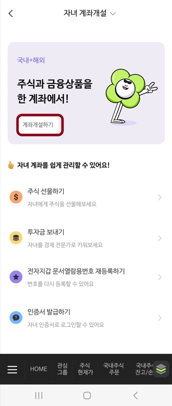 집에 온 뒤 나무 어플로 들어가 자녀 개좌개설을 시도했다.